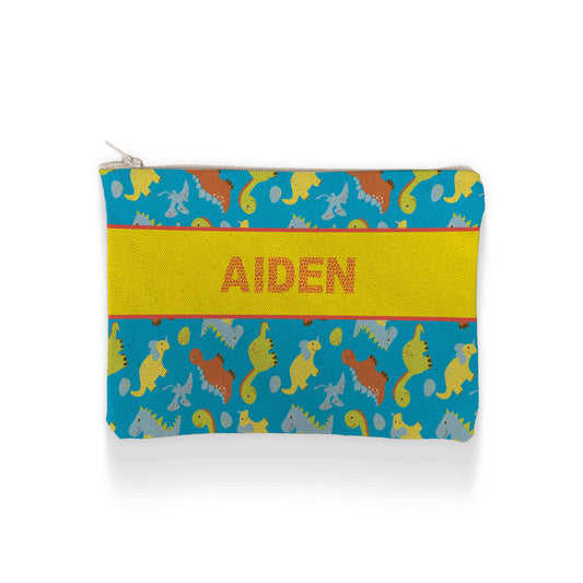 Personalized Dino Pencil Case | Sam + Zoey School Essentials Cotton Zip Pouch