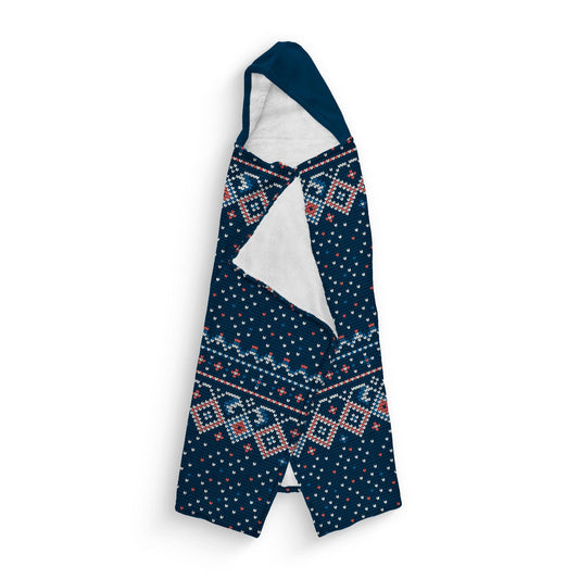 Blue Christmas Sweater Hooded Custom Fleece Blanket | Sam + Zoey Home Basics